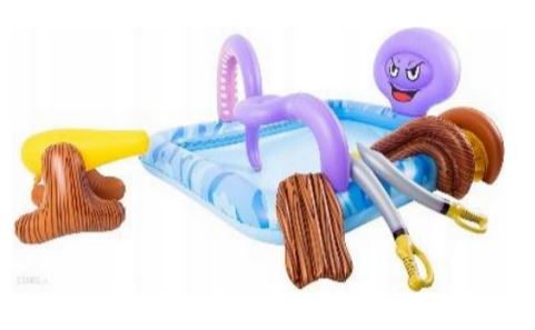 PILETA INFLABLE CON TOBOGAN, SPRAY Y JUEGOS EL SET INCLUYE 2X ESPADA, TOBOGÁN, CAÑÓN DE AGUA, TABLA