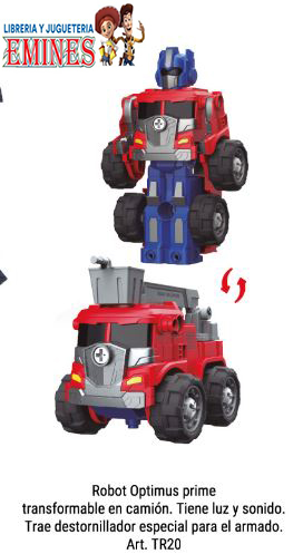 “ROBOT OPTIMUS PRIME TRANSFORMABLE EN CAMIÓN. TIENE LUZ Y SONIDO TRAE DESTORNILLADOR ESPECIAL PARA EL ARMADO MEDIDAS PACKAGING: 16 X 23,5 X 14,5 CM”